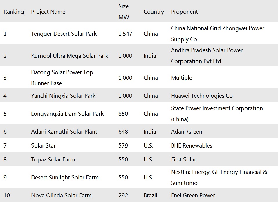 根據(jù)IEEFA的統(tǒng)計(jì),全球最大的經(jīng)營(yíng)實(shí)用規(guī)模的太陽能項(xiàng)目集中在中國(guó)和印度,包括: