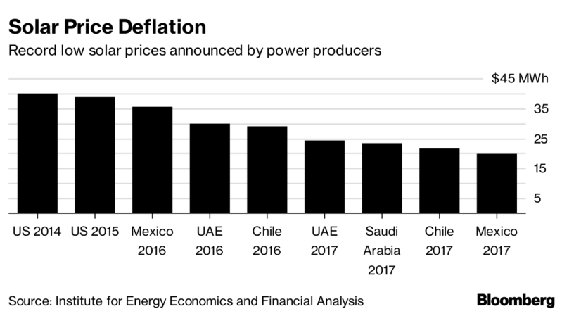 根據(jù)彭博新能源財(cái)經(jīng)數(shù)據(jù),IEEFA表示,2017年全球新增太陽能裝機(jī)98吉瓦,中國(guó)占53吉瓦。同時(shí),發(fā)電資產(chǎn)使用期間的單位電力成本同比下降15%,至86美元/兆瓦時(shí)。