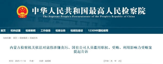 中國大唐集團(tuán)有限公司原黨組副書記、總經(jīng)理寇偉涉嫌貪污、國有公司人員濫用職權(quán)、受賄、利用影響力受賄一案,由國家監(jiān)察委員會(huì)調(diào)查終結(jié),移送檢察機(jī)關(guān)審查起訴。最高人民檢察院依法以涉嫌貪污罪、國有公司人員濫用職權(quán)罪、受賄罪、利用影響力受賄罪對寇偉作出逮捕決定,并指定由內(nèi)蒙古自治區(qū)人民檢察院興安盟分院審查起訴。近日,內(nèi)蒙古自治區(qū)人民檢察院興安盟分院已向內(nèi)蒙古自治區(qū)興安盟中級人民法院提起公訴。