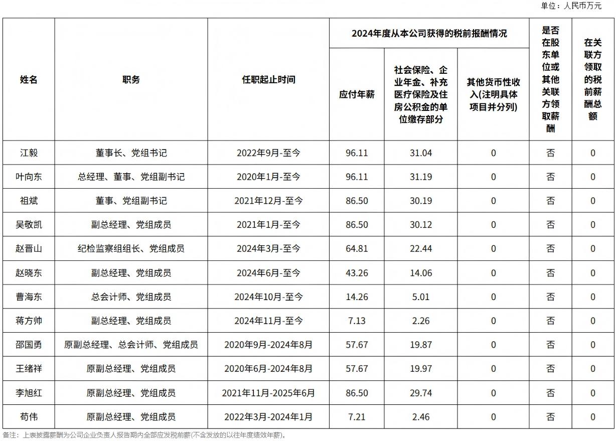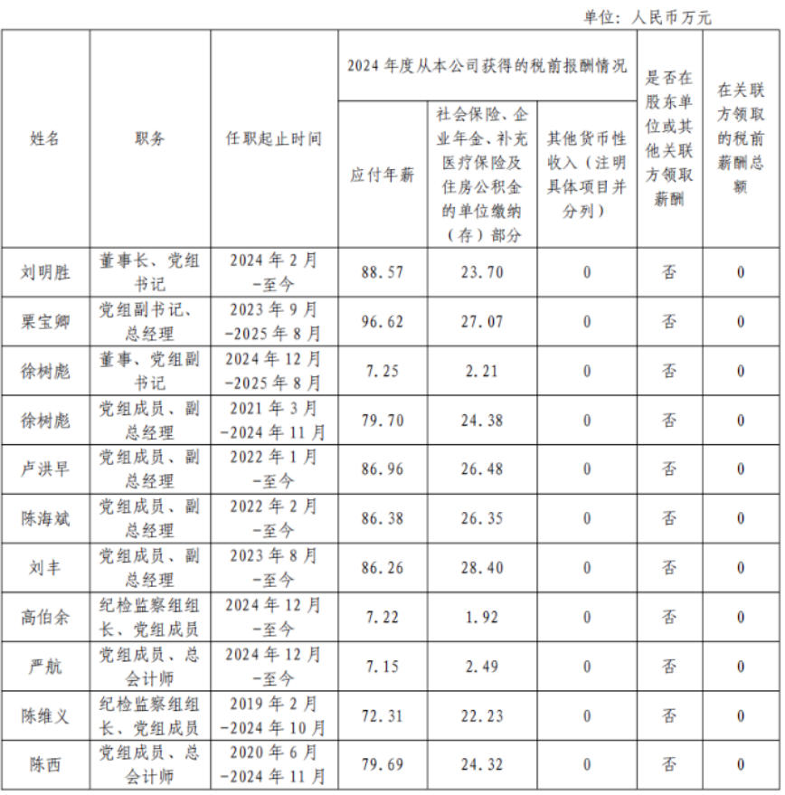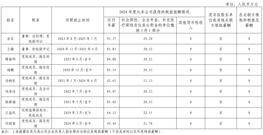 五大發(fā)電集團(tuán)負(fù)責(zé)人2024年度薪酬